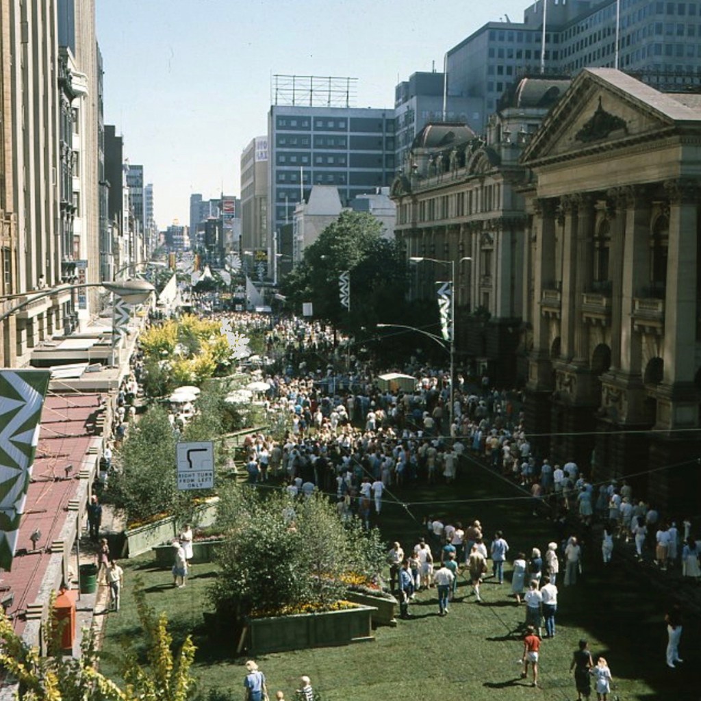 In 1985, Melbourne’s main thoroughfare, Swanston Street, was closed to traffic, covered with grass and a massive street party thrown in the name of the city’s sesquicentennial celebrations. For the party’s architects however, there was a larger agenda: to bring people back into the city.